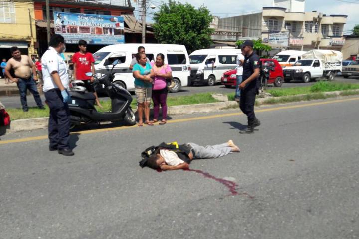 Se trata de Celso Jiménez Lozano 65 años de edad vecino de la comunal Morelos, quien se encontraba en un la tenencia de Las Guacamayas en la avenida Las Palmas a la altura del motel Peccatos y al tratar de cruzar la calle fue impactado por una motocicleta color gris de marca Honda con Placas PA W2X.