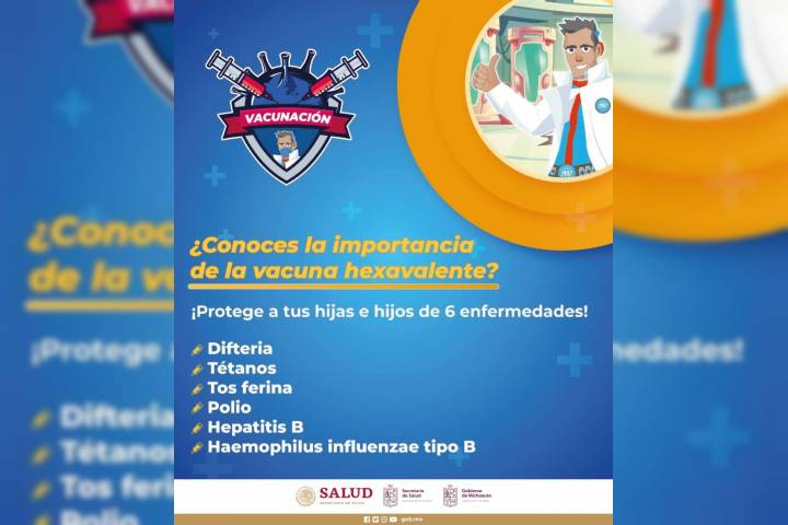 NOTICIAS 09/09/2022Continúa la campaña de vacunación contra la poliomielitis en Michoacán La SecretarÃa de Salud de Michoacán (SSM) exhorta a la población a proteger a los menores de un año contra la Poliomielitis, para ello, durante todo el mes de septiembre se estará aplicando la Hexavalente en todos los centros de salud, clÃnicas del ISSSTE y unidades de medicina familiar del IMSS.