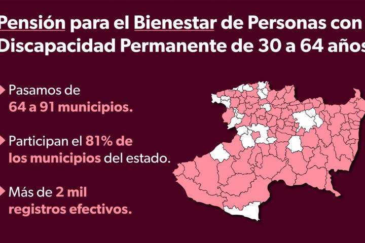 NOTICIAS 15/06/2022Conoce los municipios de Michoacán donde puedes solicitar pensión para adultos con discapacidad La pensión que el Gobierno del Estado ofrece para apoyar a personas con discapacidad permanente de 30 a 64 años de edad, ya tiene cobertura en 91 municipios de Michoacán.