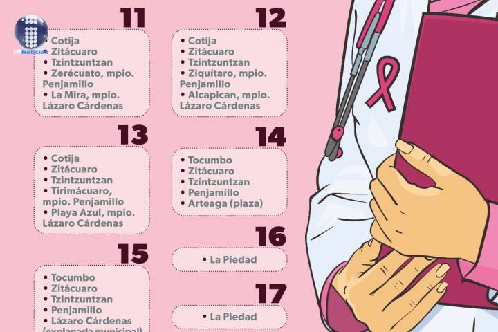 NOTICIAS 03/10/2021Unidades móviles de mastografía recorrerán comunidades de difícil accesoEn el marco del mes de la lucha y concientización contra el Cáncer de mama, la Secretaría de Salud de Michoacán (SSM) desplegará del 4 al 8 de octubre sus 5 unidades móviles en seis municipios de comunidades indígenas y de difícil acceso para reforzar acciones que permitan la detección y diagnóstico oportuno de este padecimiento.