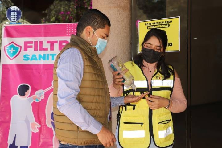 NOTICIAS 10/06/2021Promueve SSM uso de gel antibacterial a través de la instalación de filtros sanitariosEn aras de promover el uso del gel antibacterial, para la contención de casos por COVID-19, la Secretaría de Salud de Michoacán (SSM), trabaja de manera permanente en la instalación de filtros sanitarios.