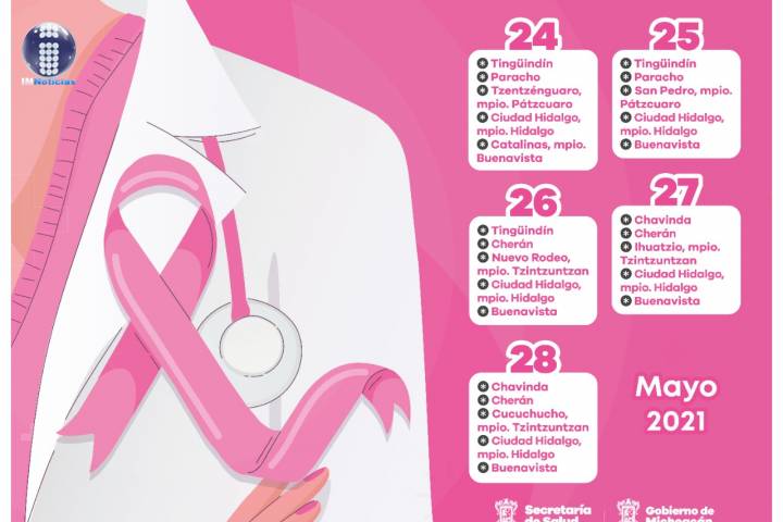 NOTICIAS 23/05/2021Mastografías, herramienta necesaria para la detección oportuna de cáncer de mama La Secretaría de Salud de Michoacán (SSM), informa los lugares en los que se encontrarán los Mastógrafos móviles, del 24 al 28 de mayo, como parte de la estrategia para la detección oportuna del cáncer de mama.