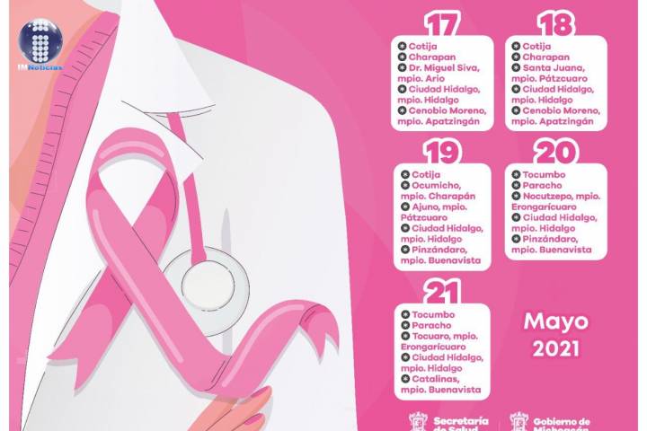 Dichas unidades estarán del 17 al 21 de mayo en Cotija, Charapan, Ario, Ciudad Hidalgo, Apatzingán, Pátzcuaro, ErongarÃcuaro y Buenavista, para que las mujeres de 40 a 69 años se acerquen a recibir el servicio grat... Ver más...