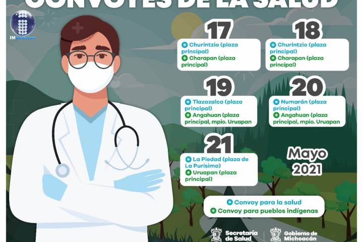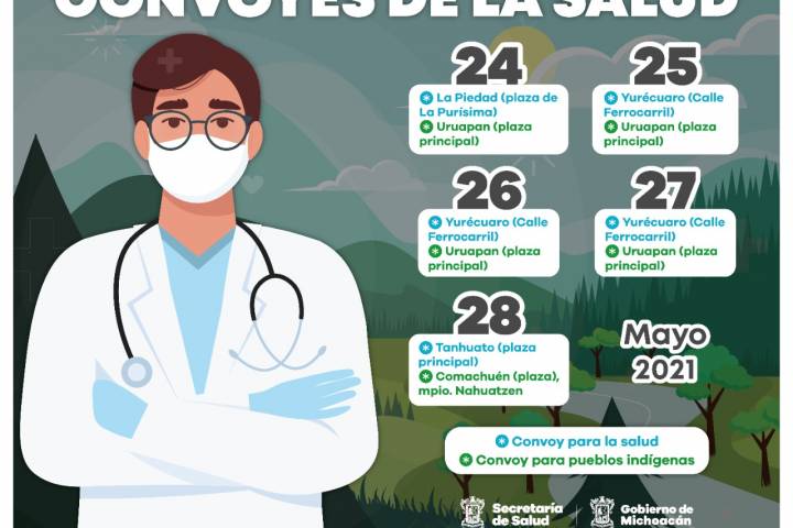 NOTICIAS 16/05/2021Convoyes de la salud y para Pueblos IndÃgenas, recorrerán 6 municipios La SecretarÃa de Salud de Michoacán (SSM), informa a la población sobre los lugares en los que se encontrarán los Convoyes de Salud y para Pueblos IndÃgenas del 17 al 21 de mayo.
