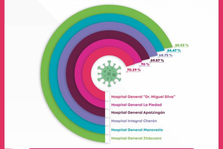 NOTICIAS 13/02/2021Por debajo del 70.29%, ocupación de camas COVID-19 en hospitales de la SSM Los hospitales con camas reconvertidas para la atención de Infecciones Respiratorias Agudas Graves (IRAG), de la Secretaría de Salud de Michoacán (SSM), se encuentran por debajo del 70.29 por ciento de su capacidad.