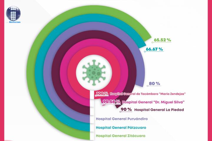El hospital de Tacámbaro se encuentra al 100 por ciento de ocupación en camas para atención de Infecciones Respiratorias Agudas Graves (IRAG), le siguen el "Dr. Miguel Silva" (95.56%), La Piedad, (90%) y Puruándiro (... Ver más...