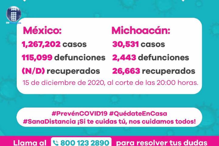 Suman 2 mil 480 defunciones por COVID-19 en Michoacán
