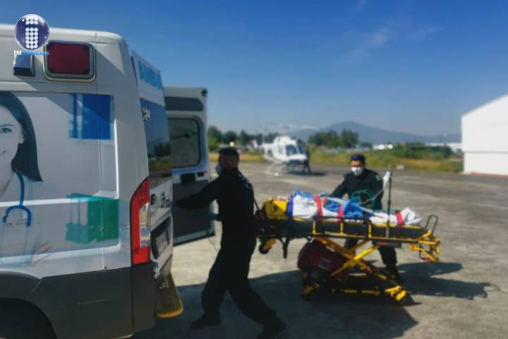 La mujer fue llevada a la capital michoacana en la ambulancia aérea de la Dirección de Servicios Aéreos del Gobierno del Estado para recibir atención especializada de manera urgente.