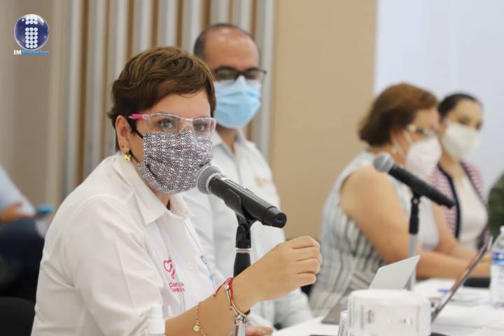Durante una reunión de trabajo, la titular de la SSM, Diana Carpio Ríos junto a la delegada del IMSS, Luisa María Rodea Pimentel y del ISSSTE, Selene Estrada explicó la importancia de aplicar el biológico de manera masiva, e inc... Ver más...