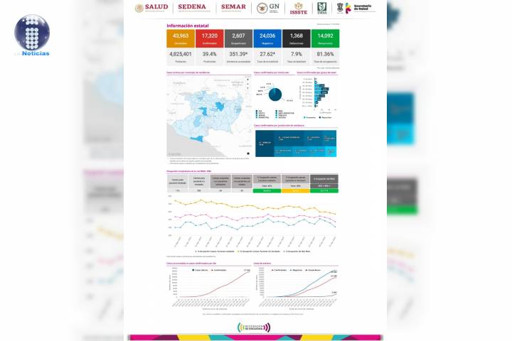 En la Unidad de Inteligencia Epidemiológica y Sanitaria (UIES), se han recibido un total de 44 mil 306 notificaciones de enfermos de vías respiratorias a descartar coronavirus, 24 mil 211 cumplieron con definición operacional resultando negativas a COVID-19, es decir, no tienen el virus. Hay 2 mil 569 sospechosos en diferentes municipios y se encuentran en proceso. Hasta el día de hoy se han acumulado 17 mil 526 casos confirmados (206 c...