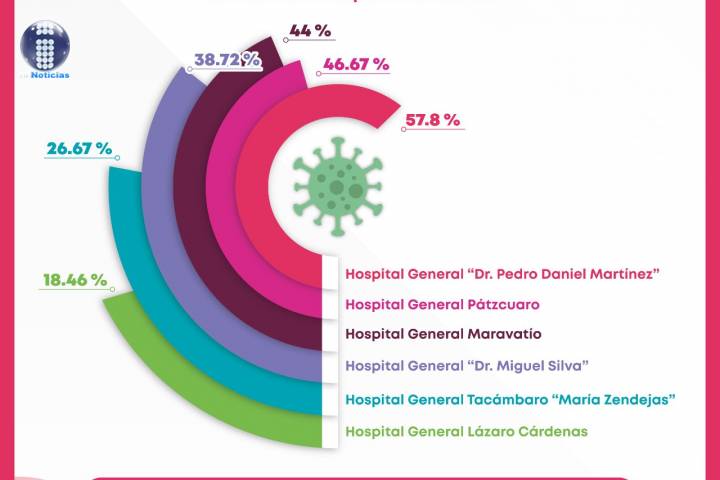 De los seis hospitales de la Secretaría de Salud de Michoacán (SSM) con camas reconvertidas para la atención de pacientes graves por COVID-19, el de Uruapan "Dr. Pedro Daniel Martínez", es el que registra una mayor ocupación, con el 57.8 por ciento. A este le sigue el de Pátzcuaro, con el 46.67 por ciento; Maravatío con el 44 por ciento; Tacámbaro, con el 26.67 por ciento y Lázaro Cárdenas, con el 18.46 por ciento. Con relación...