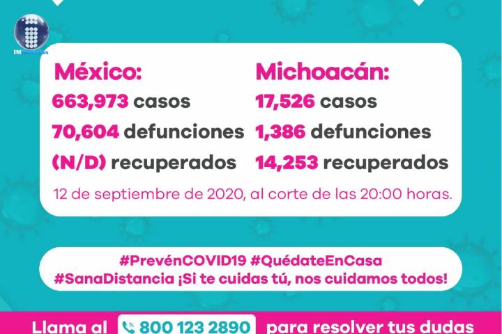 Suman 1349 defunciones por COVID-19 en Michoacán