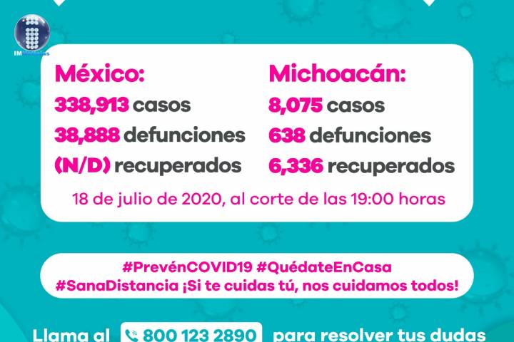 NOTICIAS 20/07/2020Van 645 muertes por COVID-19 en Michoacán
