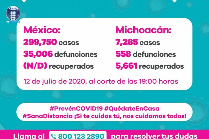 NOTICIAS 12/07/2020Ya son 558 muertes por Covid-19 en Michoacán En la Unidad de Inteligencia Epidemiológica y Sanitaria (UIES), se han recibido un total de 21 mil 620 notificaciones de enfermos de vÃas respiratorias a descartar coronavirus, 12 mil 228 cumplieron con definición operacional resultando negativas a COVID-19, es decir, no tienen el virus.