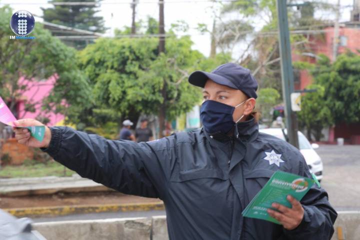 Elementos de la Policía Michoacán realizan trabajos de proximidad social en las salidas a ... Ver más...