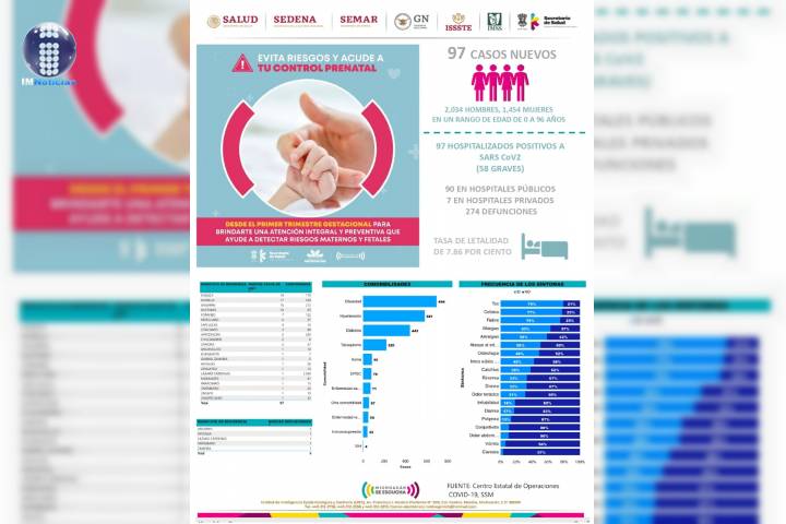 Hasta el día de hoy se han acumulado 3 mil 488 casos confirmados (97 casos nuevos) y 274 defunciones de pacientes pos... Ver más...