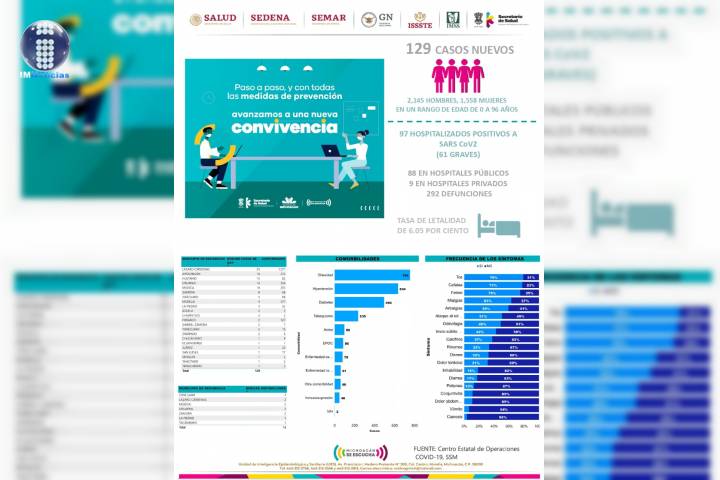 NOTICIAS 15/06/2020Se eleva a 292 casos confirmados de Covid-19 en Michoacán