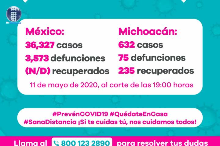NOTICIAS 10/05/2020598 casos confirmados y 70 defunciones por COVID-19 en Michoacán