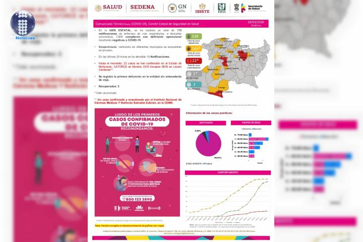 Hasta el momento: 22 casos se han confirmado en el Estado de Michoacán, CATORCE en ... Ver más...