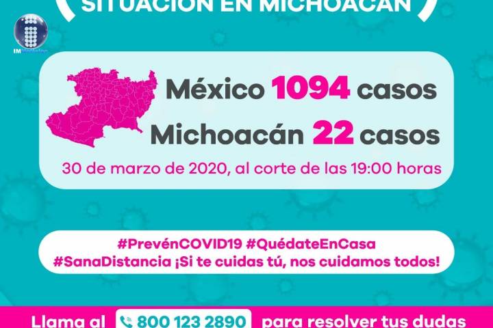 NOTICIAS 30/03/2020Luego de 24 horas Michoacán se mantiene en 22 casos por coronavirus