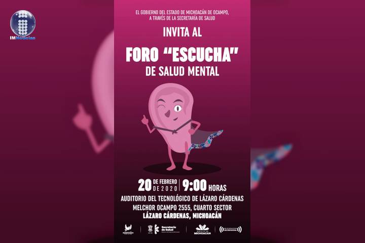 NOTICIAS 18/02/2020Foro Escucha, este jueves en el Auditorio del Tecnológico de Lázaro Cárdenas: SSMEl Auditorio del Tecnológico de Lázaro Cárdenas, será sede del Foro "Escucha", este jueves 20 de febrero, como parte de la Estrategia Integral de Salud Mental, impulsada por el Gobierno del Estado, para prevenir la depresión, adicciones, violencia y suicidio.