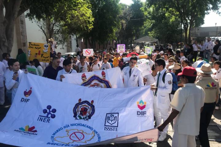Como parte de las actividades que se realizan en el marco del día Michoacano sin Fumar, este martes se realizó la edición 25 de la marcha en contra de esta adicción la cual partió de la plaza Villalongín rumbo a la Plaza Benito Juárez.