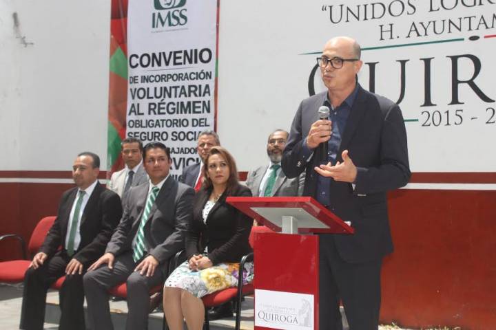 Se llevó a cabo la firma de Convenio de Incorporación Voluntaria al Régimen Obligatorio del Seguro Social a los trabajadores al servicio del Municipio, celebrado entre la Presidencia Municipal de Quiroga, signado por el regidor Melchor Vargas Villicaña y el Instituto Mexicano del Seguro Social, bajo la rúbrica del Delegado Regional en Michoacán, Román Acosta Rosales. En el evento protocolario, Román Acosta, celebró el compromiso del A...