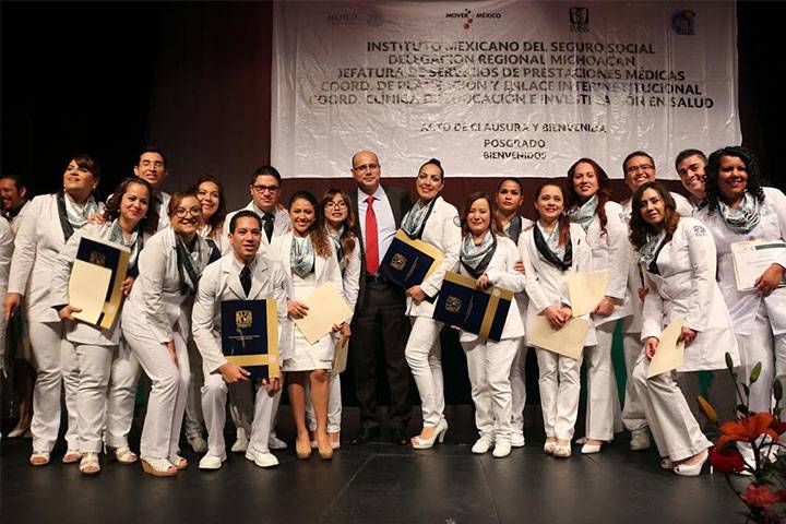 NOTICIAS 26/02/2016Cumple su misión el IMSS, de ser formador de médicos especialistasUn total de 80 médicos generales egresaron de su residencia médica, tanto del Hospital General Regional (HGR) No. 1 Morelia Charo, como de las Unidades de Medicina Familiar (UMF) Nos. 80 de Morelia y 76 de Uruapan, generación 2015-2016, con lo que se cumple con otra faceta del Instituto Mexicano del Seguro Social (IMSS) de constituirse como campo clínico - escuela.