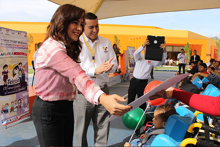 Con el fin de brindar acceso a los servicios de salud a las familias CRIT Michoacán, que no cuentan con ningún tipo de seguridad social, la Secretaría de Salud en la entidad, a través del Seguro Popular, realizó la afiliación de 227 familias y entregó de manera simbólica cinco pólizas a niños con discapacidad.