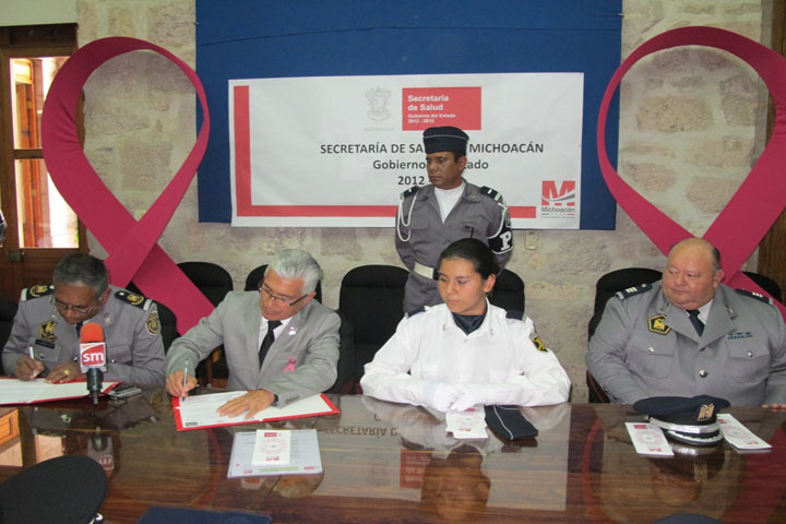 NOTICIAS 19/10/2012SSM Y PDMU firman convenio para realizar acciones de prevención contra el cáncer de mamaLa Secretaria de Salud en la Entidad, llevó a cabo firma de convenio con el Pentatlon Deportivo Militarizado Universitario de la XVI Zona Michoacán (PDMU), con el objetivo de dar inicio a nivel nacional con la campaña de prevención de lucha contra el cáncer de mama.