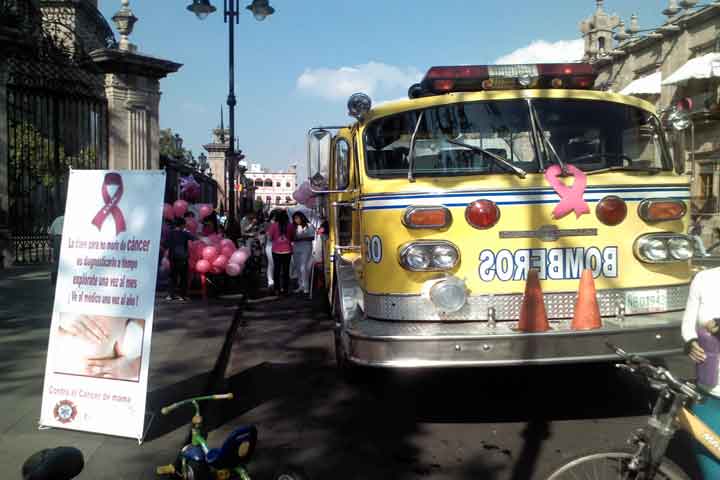 Integrantes del grupo de Bomberos Voluntarios y Asesoría Profesional en Emergencias (BVAPE) y de la fundación Roberto arrancaron este domingo la campaña contra el cáncer de mama. Desde las 10:00 horas instalaron un módulo de información a fin de crear conciencia entre la población.